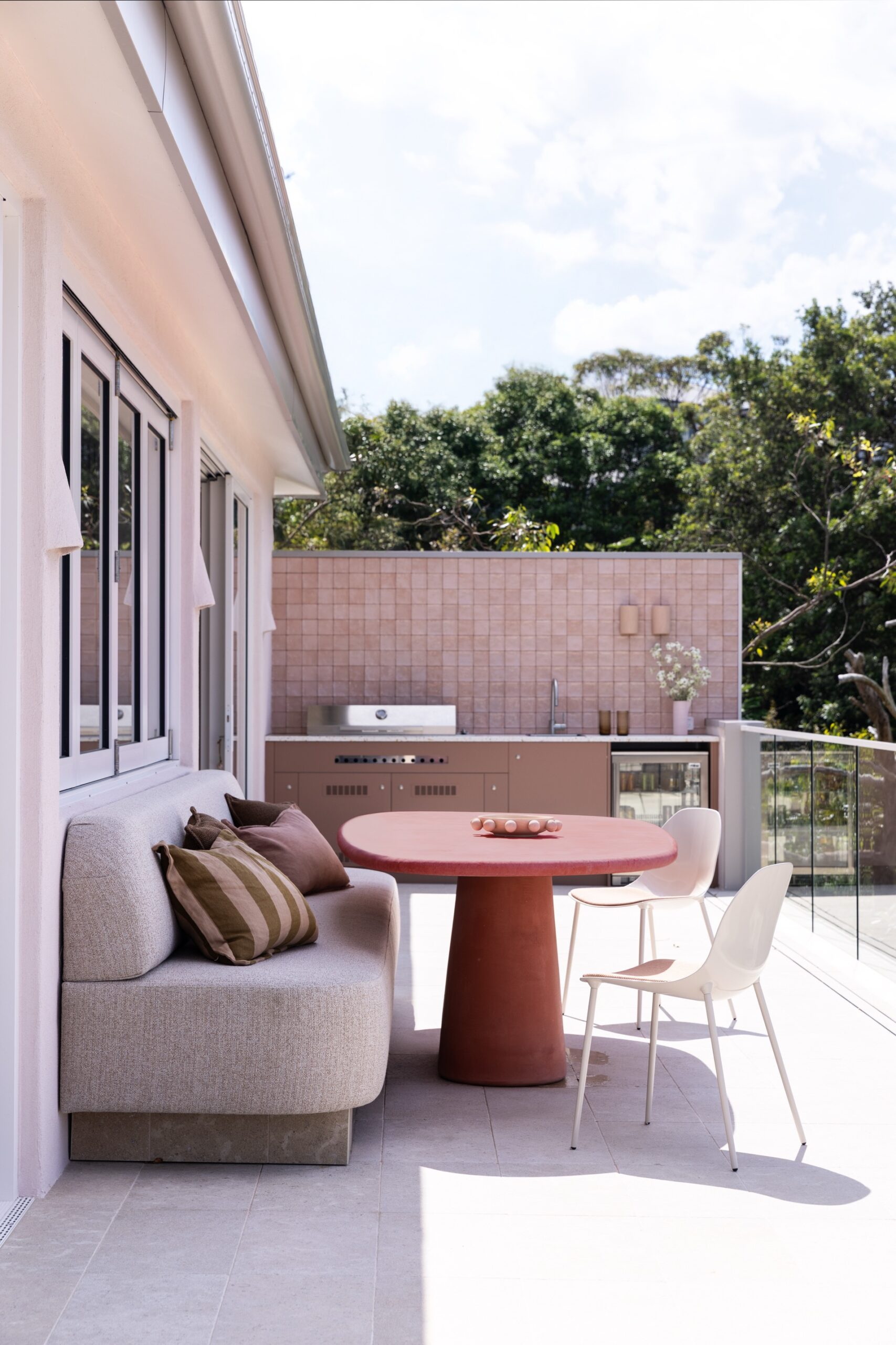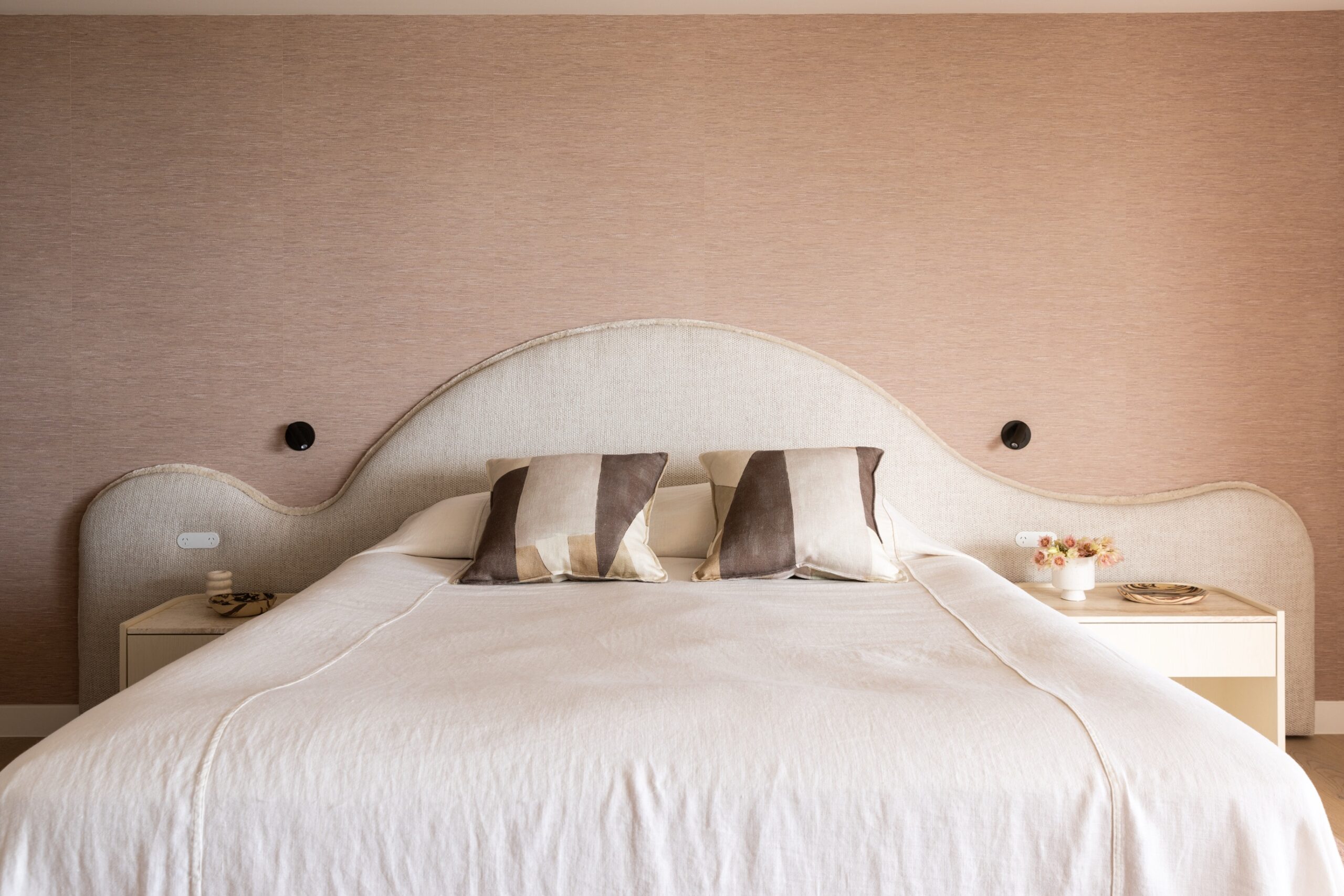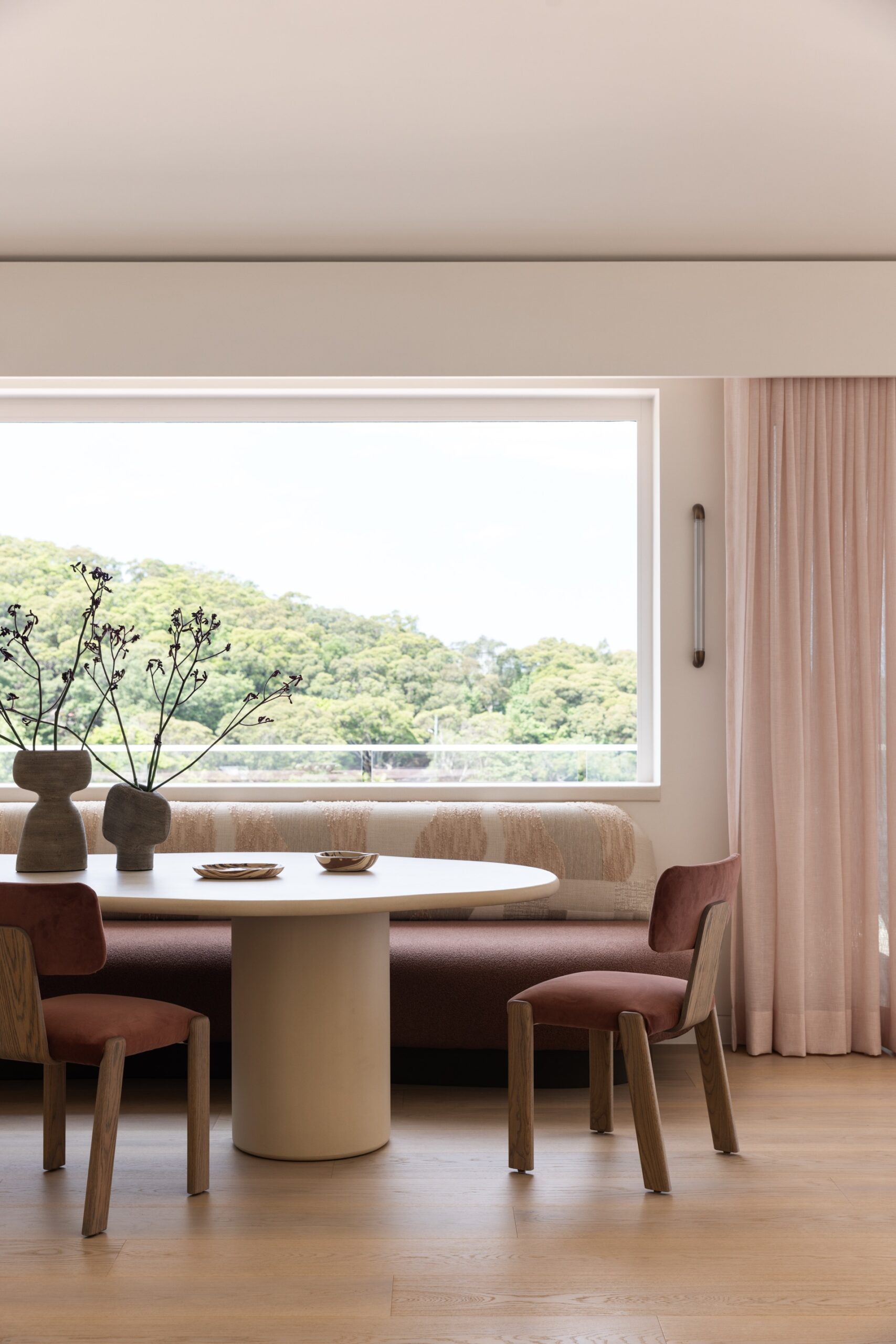 The North Avoca Residence has uninterrupted and sweeping views of the ocean which provides a truly breathtaking backdrop embedded into a tranquil and private setting. Woods and Warner were engaged during the project to refine, curate, and oversee the finishes schedule, creating a design palette that balances simplicity with an unmistakable sense of quiet luxury. The design approach is notably warm and ensures there is a dedication to subtle and textural features. Once the foundations were laid and executed by the building team W&W commenced the design and procurement of furniture, soft furnishings and art. Thoughtfully prepared each space has its own personality yet continuous flow throughout the spaces. The milky almond palette was prioritised for the main living spaces creating a gentle flow, however as you move throughout the zones deeper and more joyful surprises await. Woods & Warners natural ability to transform a house into a home shines through this project. There is a balance of calm yet a striking undertone of modern coastal glamour.