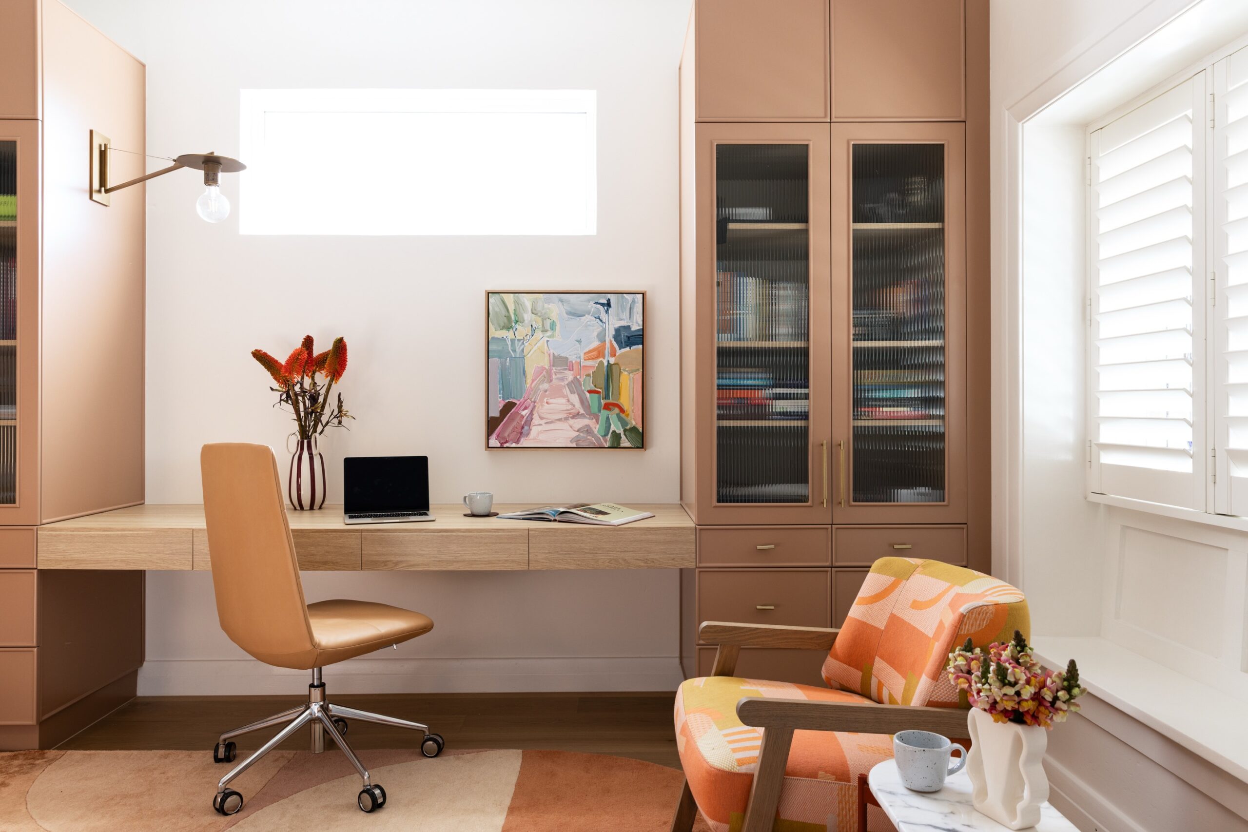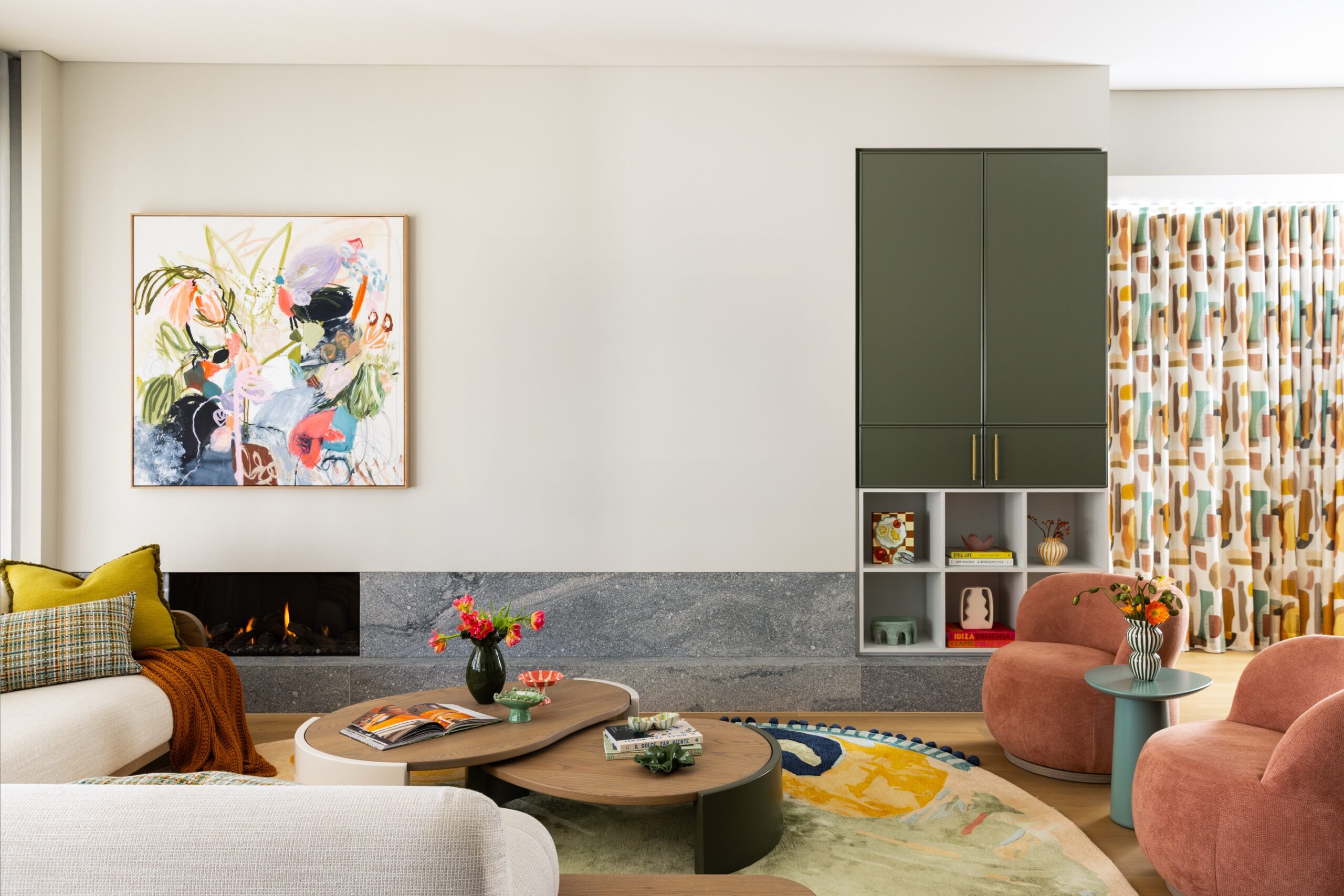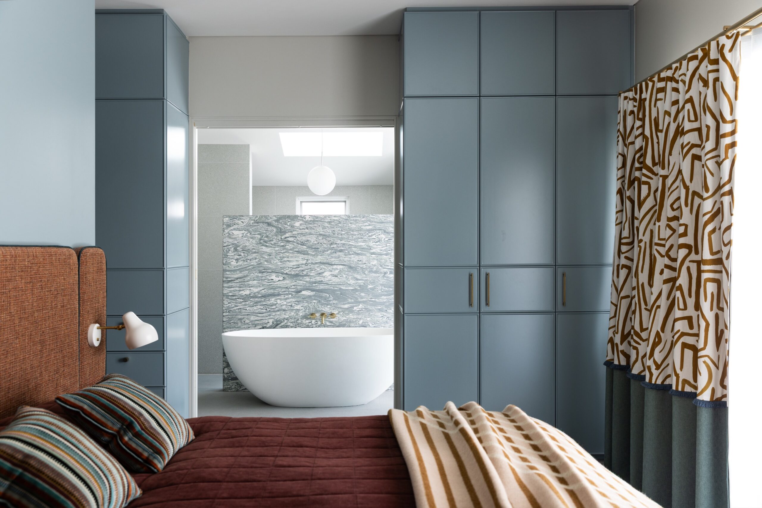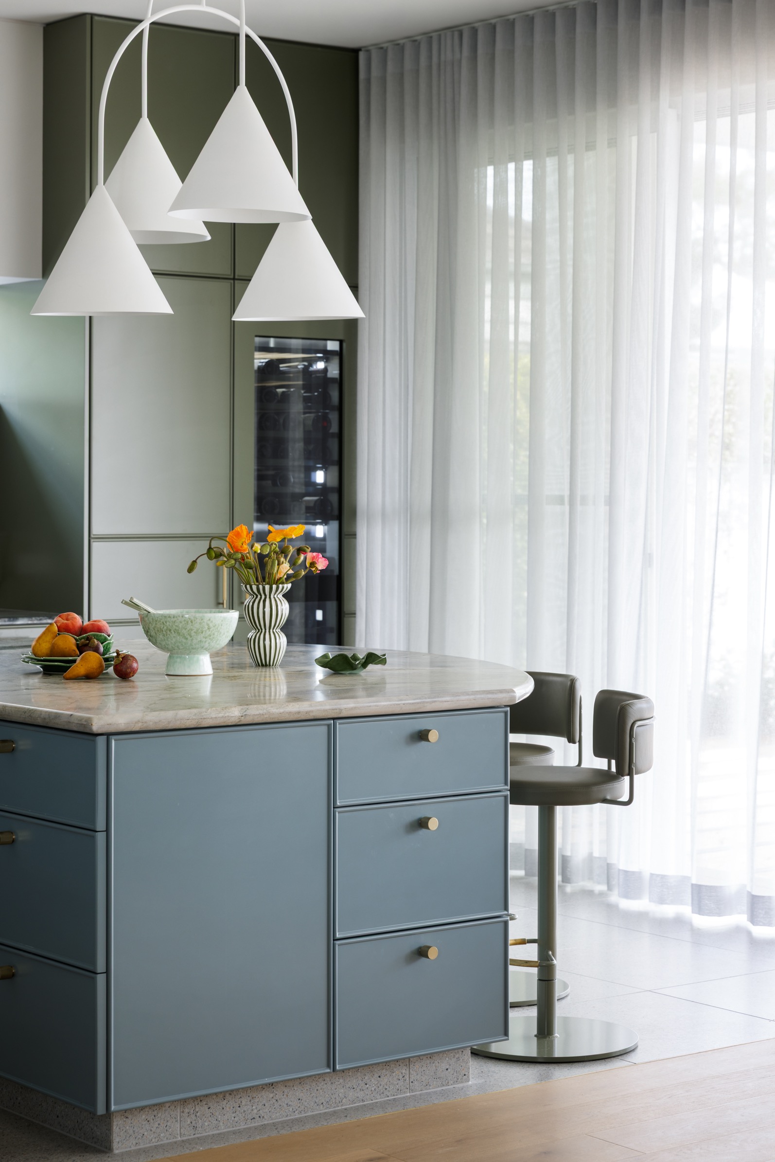 The Northbridge Residence reflects the colour palette of our Australian landscape in a contemporary and fresh existence. Our use of colour in warm neutrals, eucalypt greens, ocean blues and terracotta reds celebrates a confidence in the interior. Large adored windows simply dressed with sheer curtains, open plan living combining lounge, kitchen and dining is an iconic architectural design template for Australian Living. The home once challenged for light now feels effortless, bright and relaxed. Woods & Warner were engaged from concept to completion ensuring every detail from material choice, joinery design and soft furnishing element was cohesive and presented a modern take on the original Californian Bungalow.