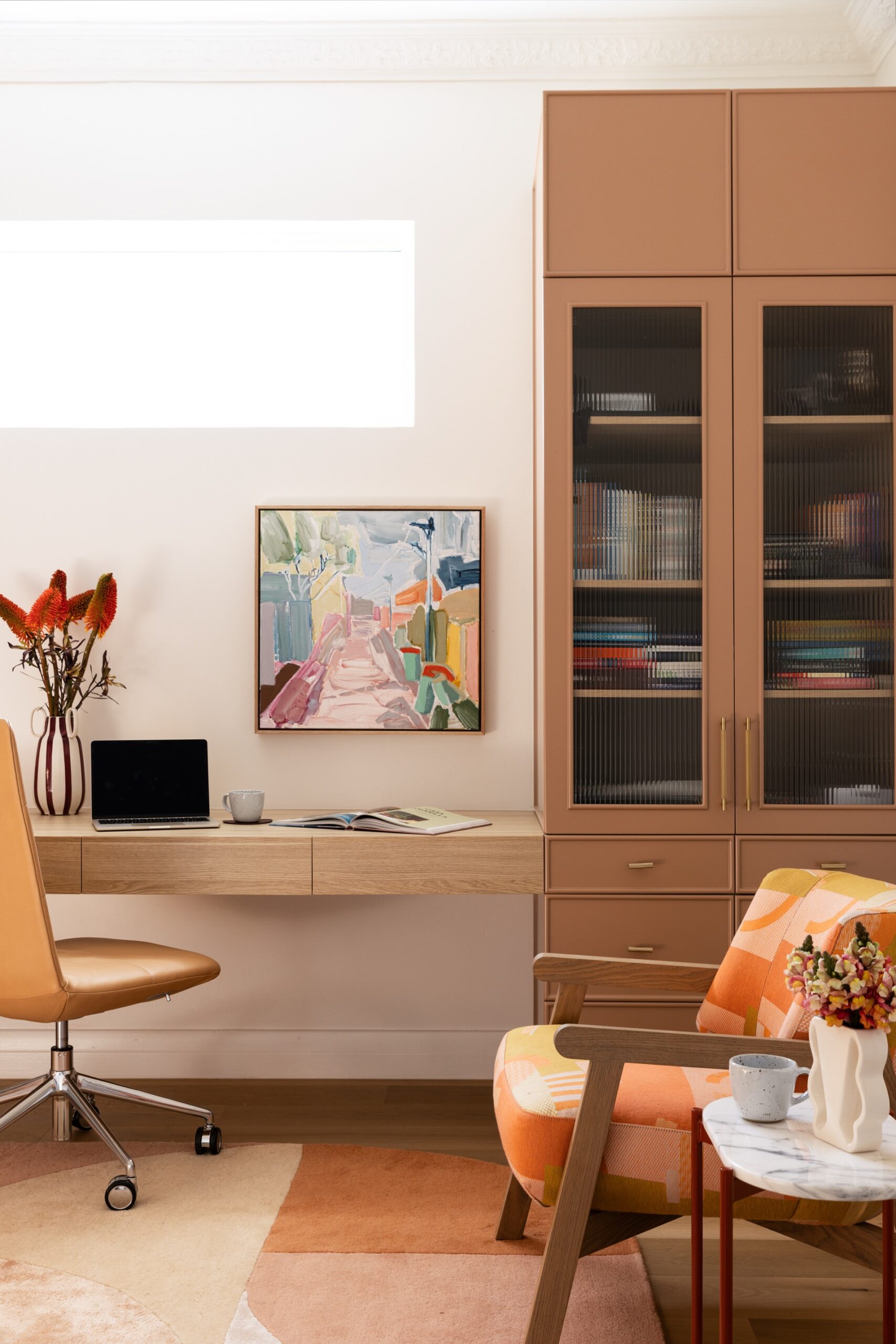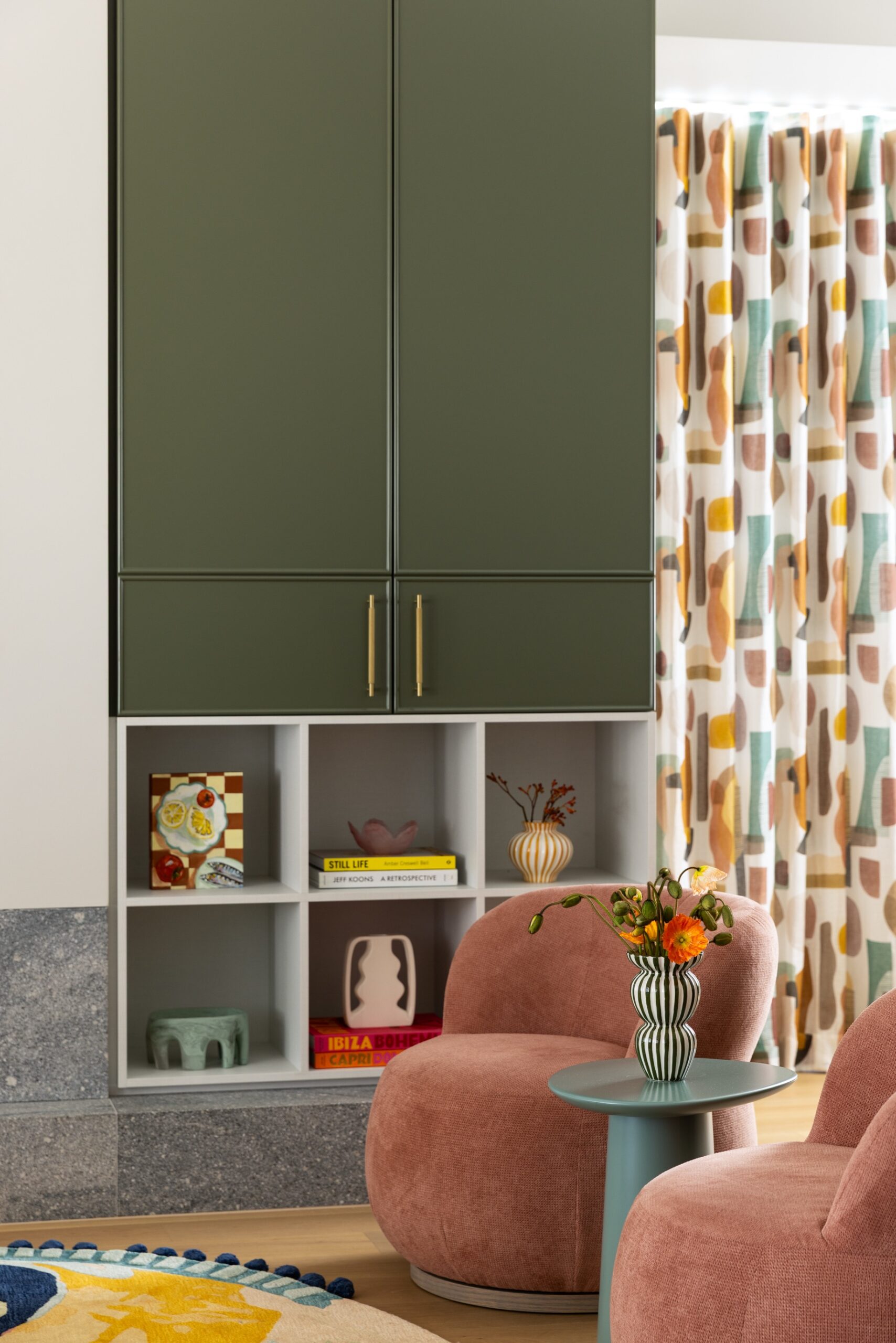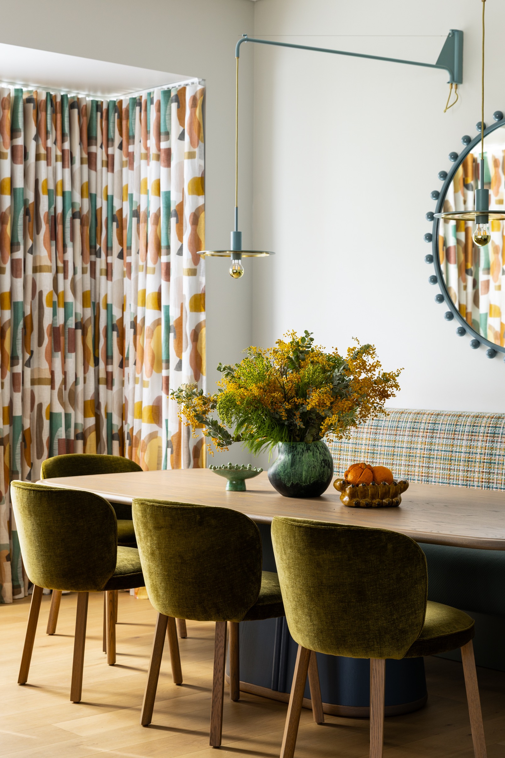 The Northbridge Residence reflects the colour palette of our Australian landscape in a contemporary and fresh existence. Our use of colour in warm neutrals, eucalypt greens, ocean blues and terracotta reds celebrates a confidence in the interior. Large adored windows simply dressed with sheer curtains, open plan living combining lounge, kitchen and dining is an iconic architectural design template for Australian Living. The home once challenged for light now feels effortless, bright and relaxed. Woods & Warner were engaged from concept to completion ensuring every detail from material choice, joinery design and soft furnishing element was cohesive and presented a modern take on the original Californian Bungalow.