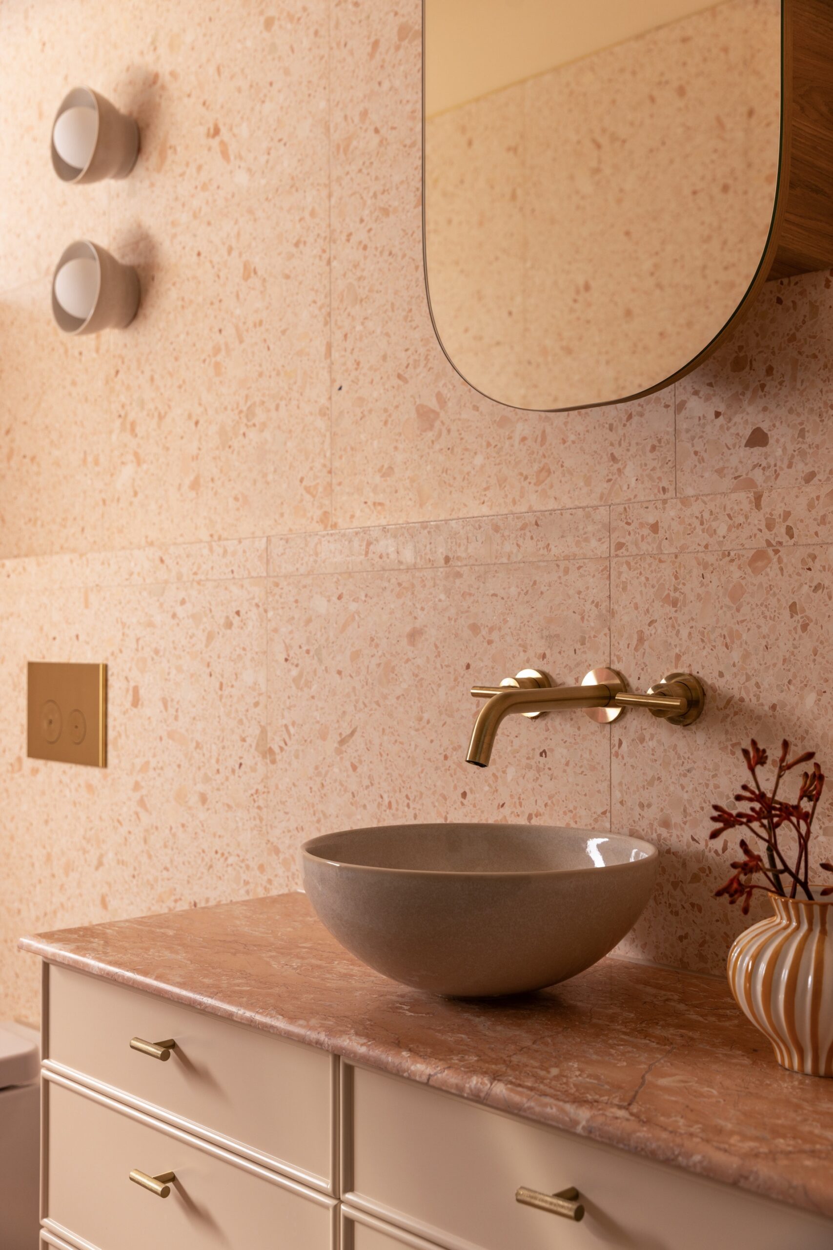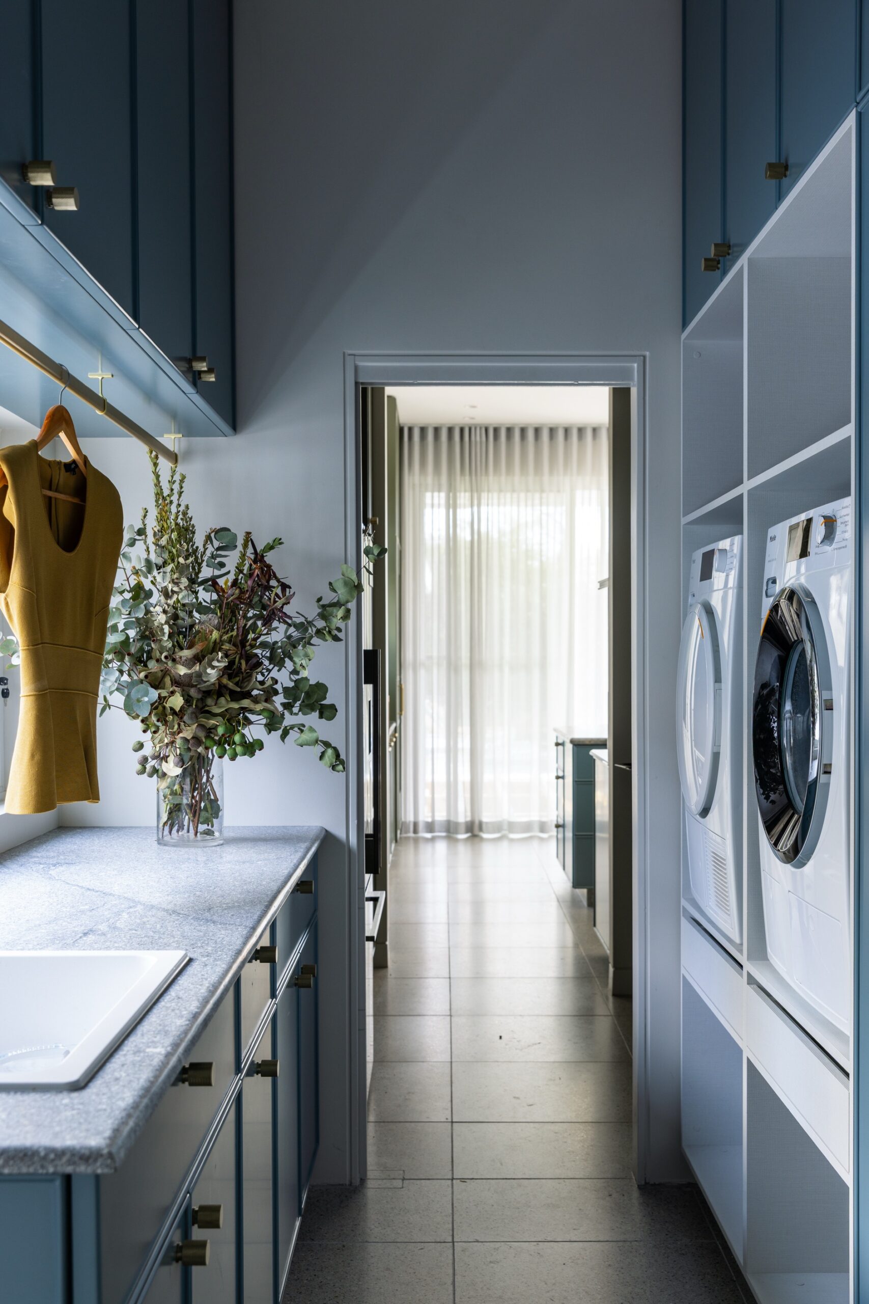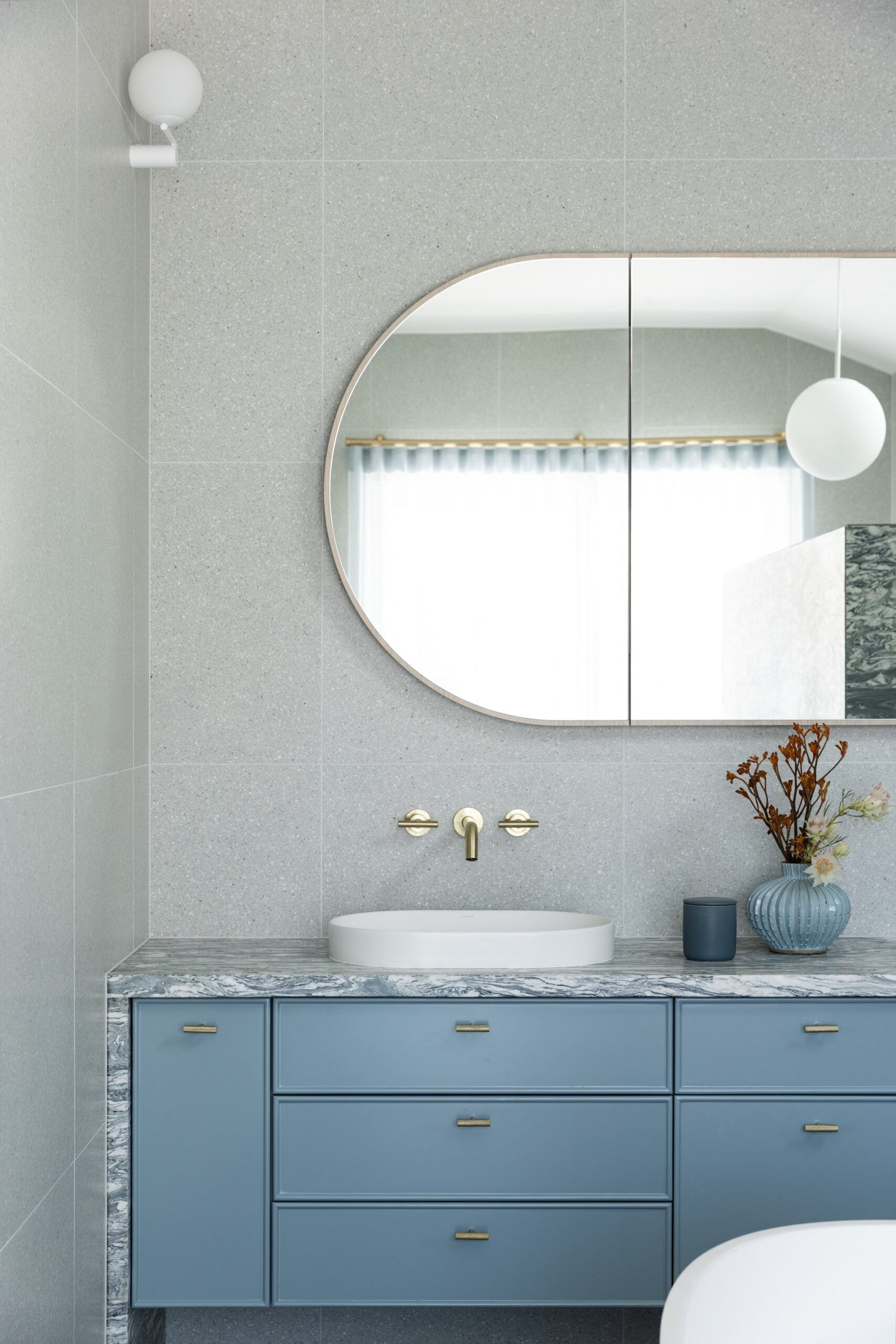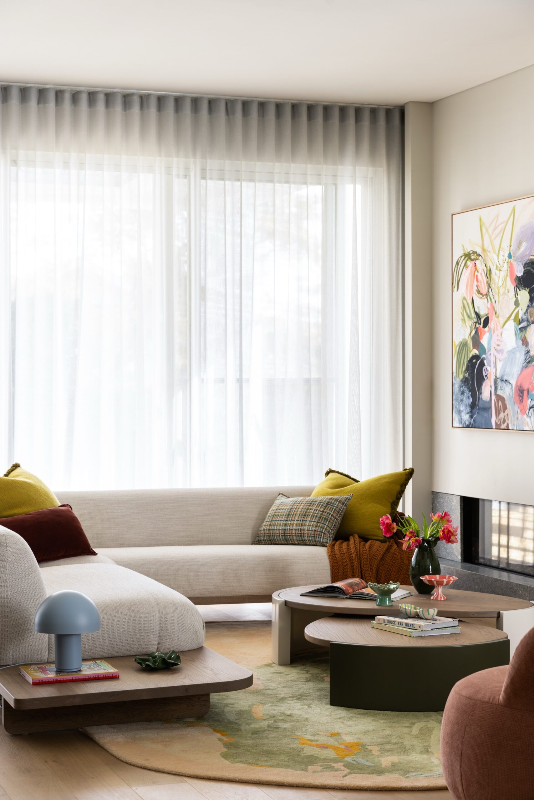 The Northbridge Residence reflects the colour palette of our Australian landscape in a contemporary and fresh existence. Our use of colour in warm neutrals, eucalypt greens, ocean blues and terracotta reds celebrates a confidence in the interior. Large adored windows simply dressed with sheer curtains, open plan living combining lounge, kitchen and dining is an iconic architectural design template for Australian Living. The home once challenged for light now feels effortless, bright and relaxed. Woods & Warner were engaged from concept to completion ensuring every detail from material choice, joinery design and soft furnishing element was cohesive and presented a modern take on the original Californian Bungalow.