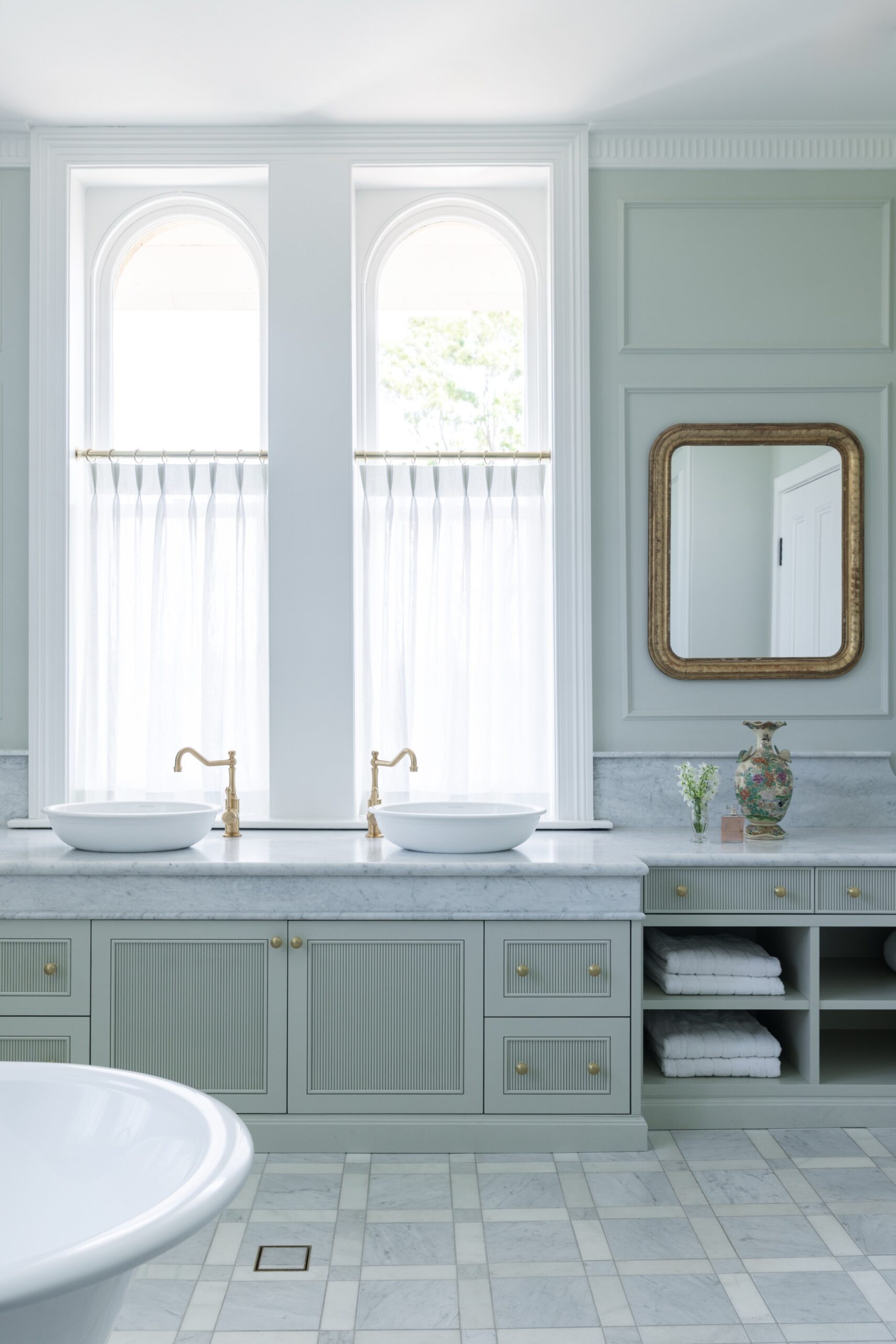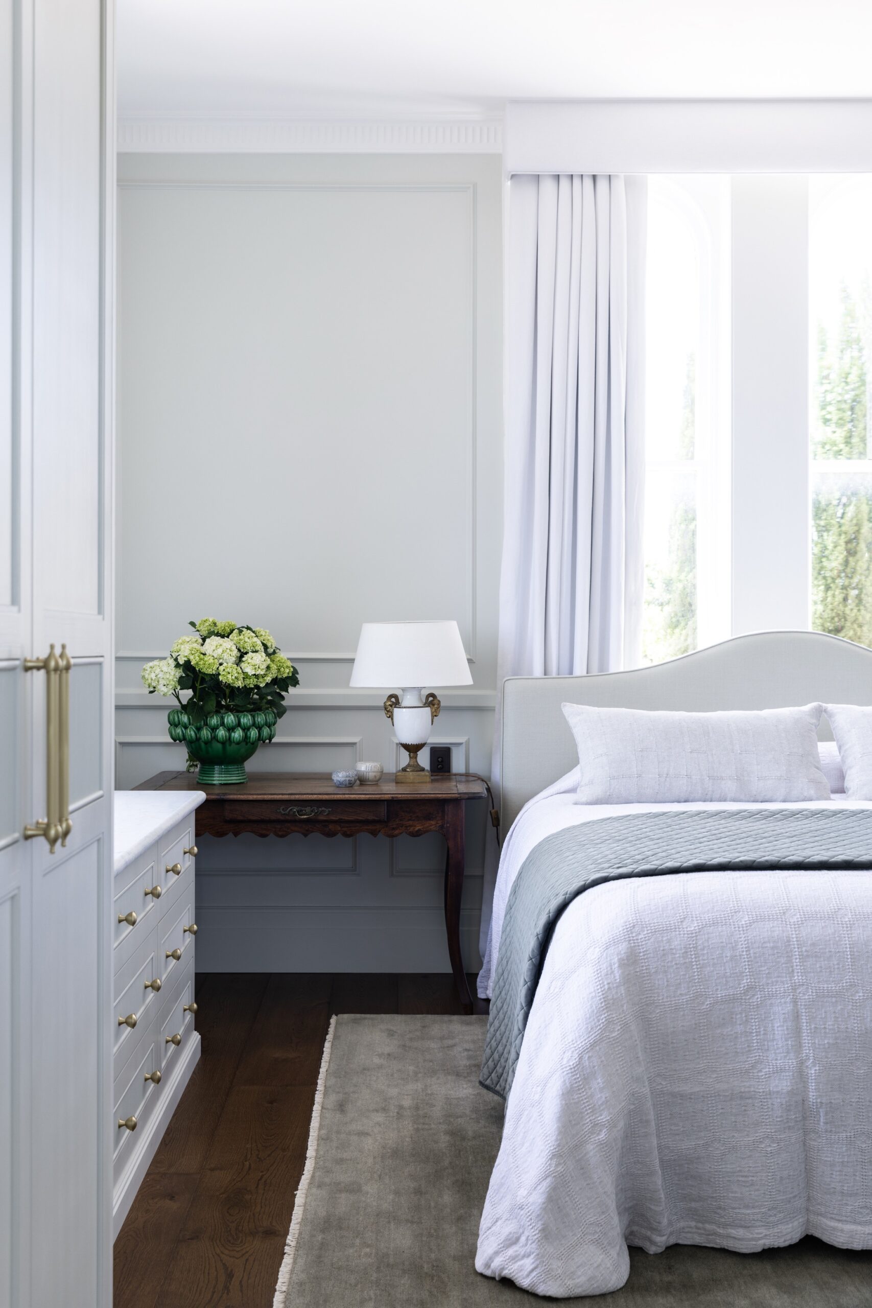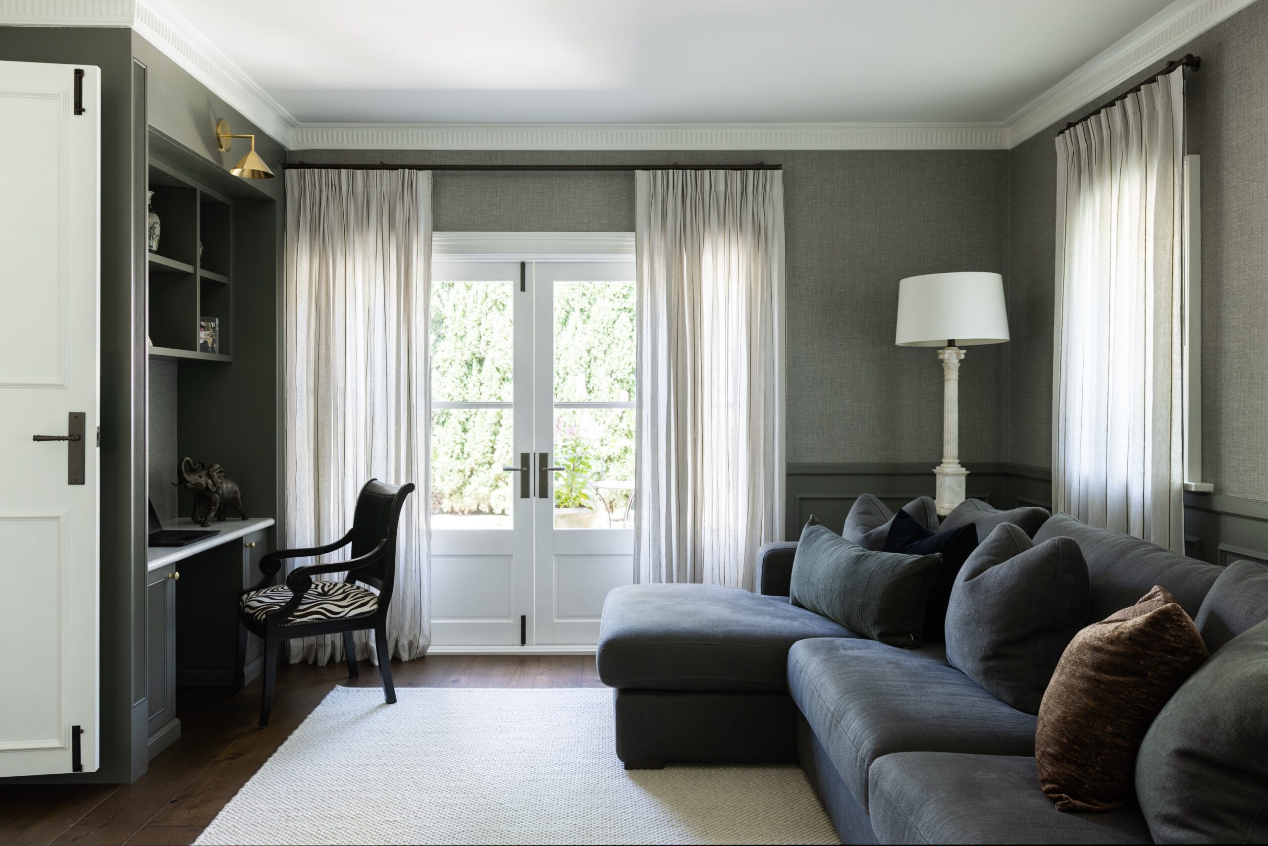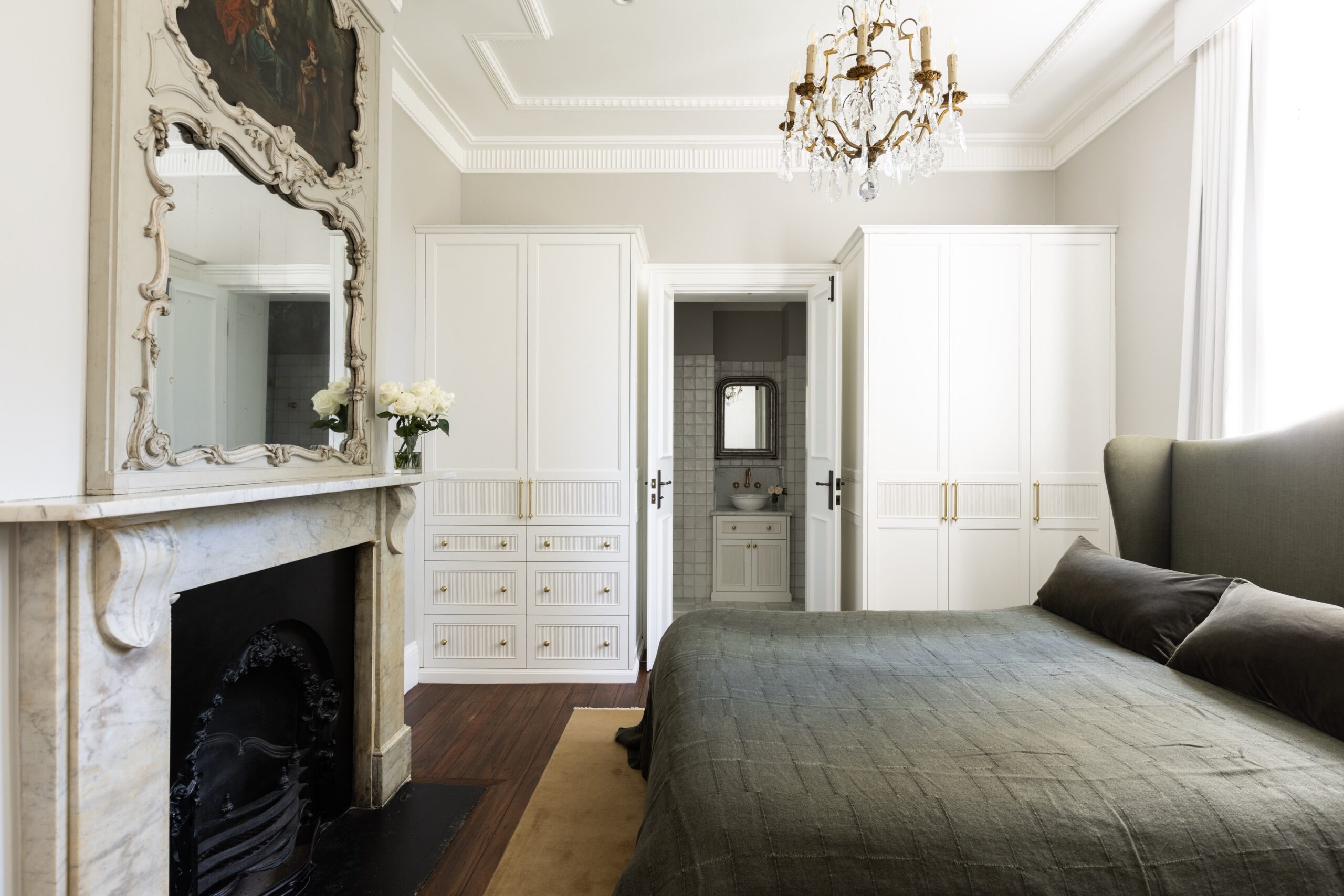 Woods & Warner had the privilege of redesigning this graceful home, transforming its spaces to reflect a contemporary way of living while honouring its classic charm. In some areas, the team moved away from the traditional footprint to create a fresh, modern flow, whilst being careful to retain timeless elements that celebrate the home’s heritage. The result is a harmonious contrast between old and new—a space that feels both elegant and inviting. Traditional techniques of wainscotting, tessellated tile and stone inlays, wallpaper and classic trimming details were all embraced to embody a cohesive and layered identity to the spaces. The transition to the homes heritage and renovation is seamless. The building team cleverly restored the old gem whilst enhancing the structure. The restrained palette in areas is then heavily contrasted with moodier tones and defined antiques to ensure each of the zones carries their identity and purpose lovingly throughout. With many standalone moments it becomes difficult to pick one favourite as the home is carefully balanced within its layered aesthetic.